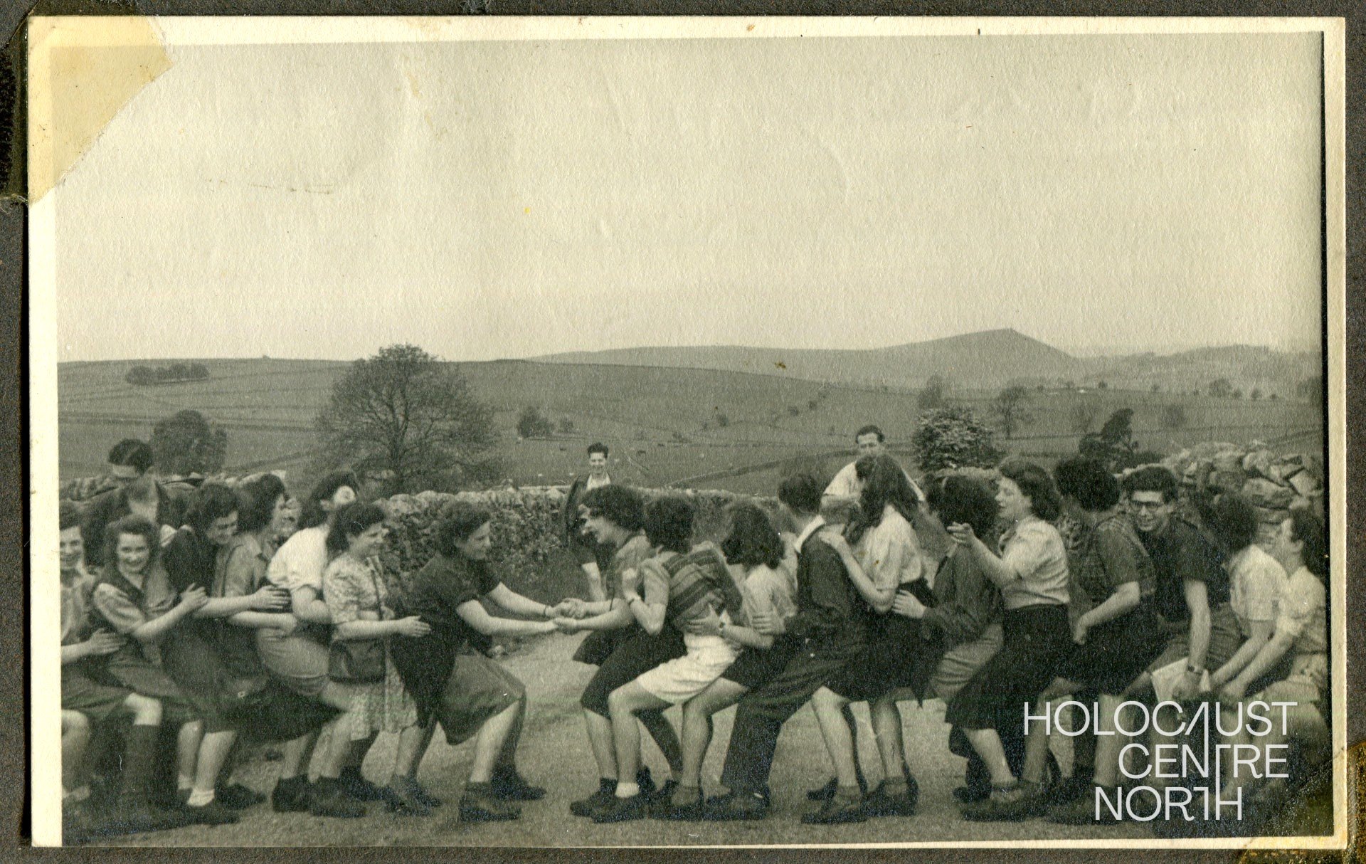 Members of the Young Austria youth club play tug of war in the English countryside, 1944.