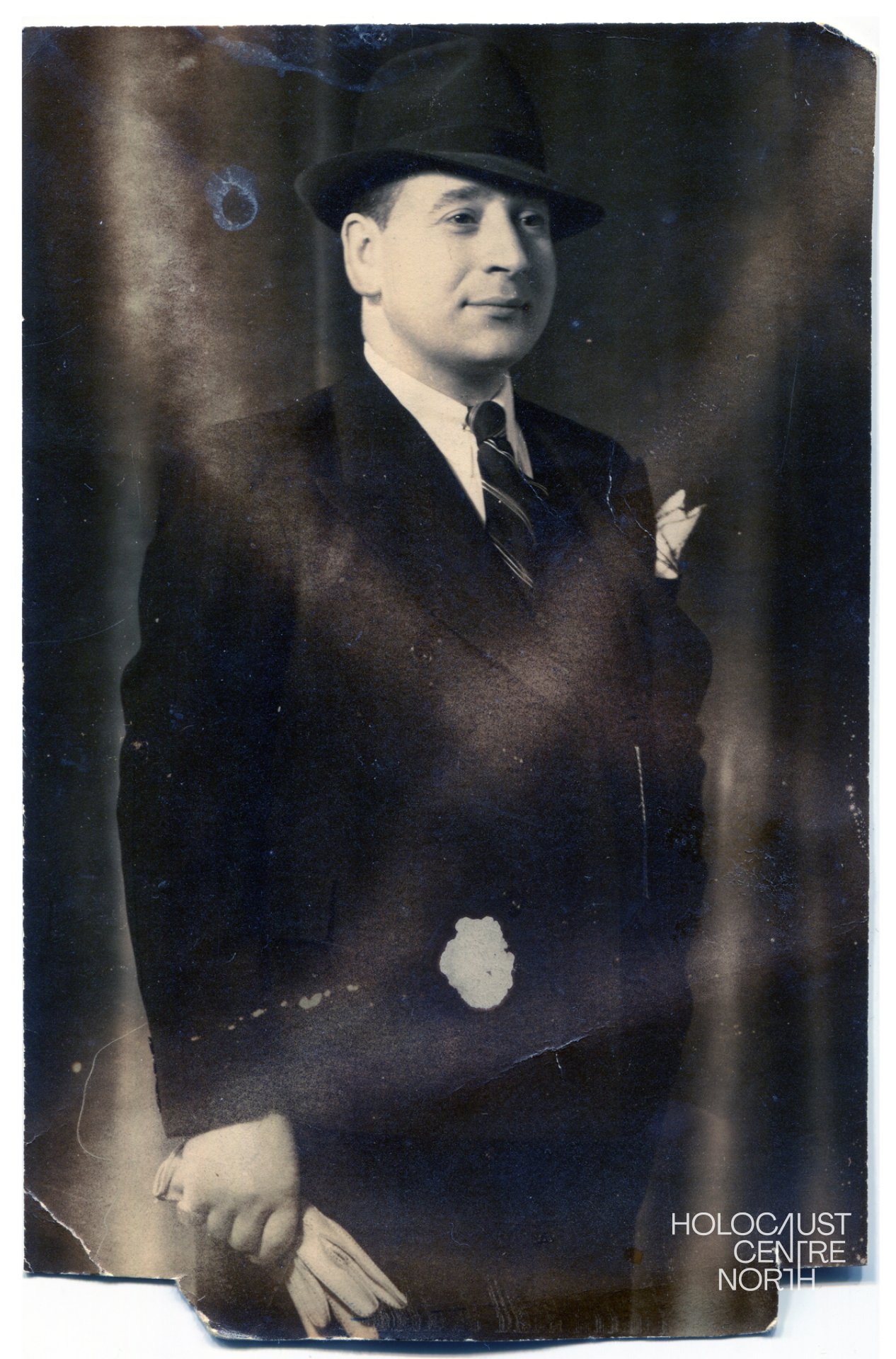 Well-worn, much-loved photo of Hilel Erner, sent to his family in 1940 with a special message: So that my two children do not forget what their papa looks like, I send this picture, in the hope that they will hold it just as dear as if I were with you. A thousand kisses and all good wishes for my wife and the children. Hilel.